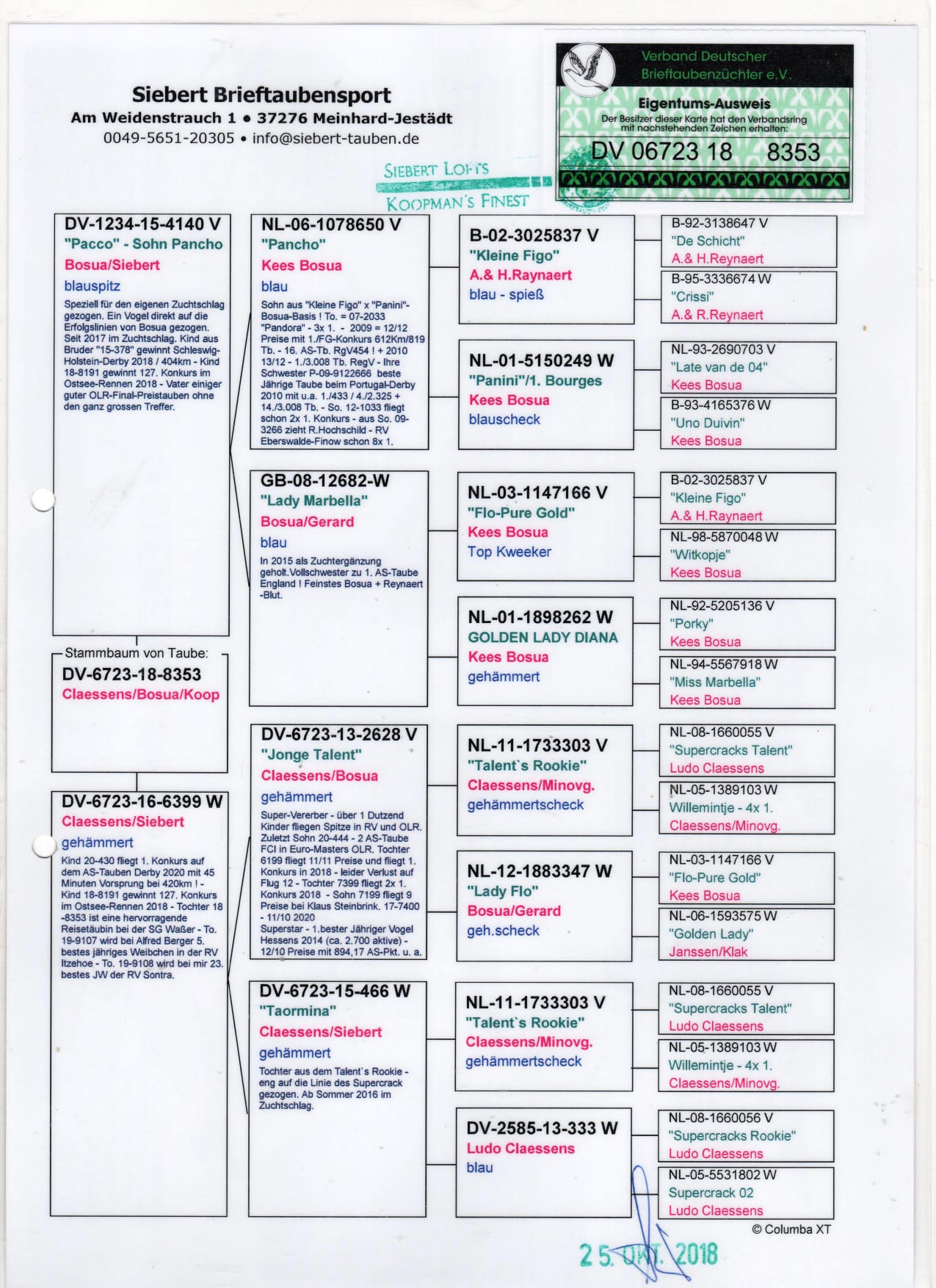 Dişi DW-6723-18-8353 ORG DİETER SİEBERT KENDİSİ 3 SNE YARIŞMIŞTIR