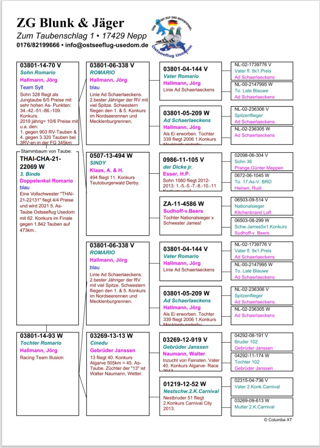 Dişi THAI-CHA-21-22069 ROMARİO ÇİFT TARAFTAN TORUN KUŞ 500 KM FİNAL 136